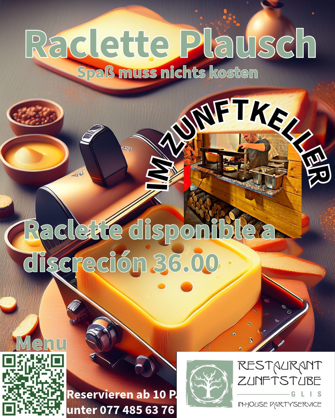 Wähle deine Location: Zunftstube, Zunftkeller oder Zunftgarten. Lass dich von unsererer Menüvielfalt insperieren.